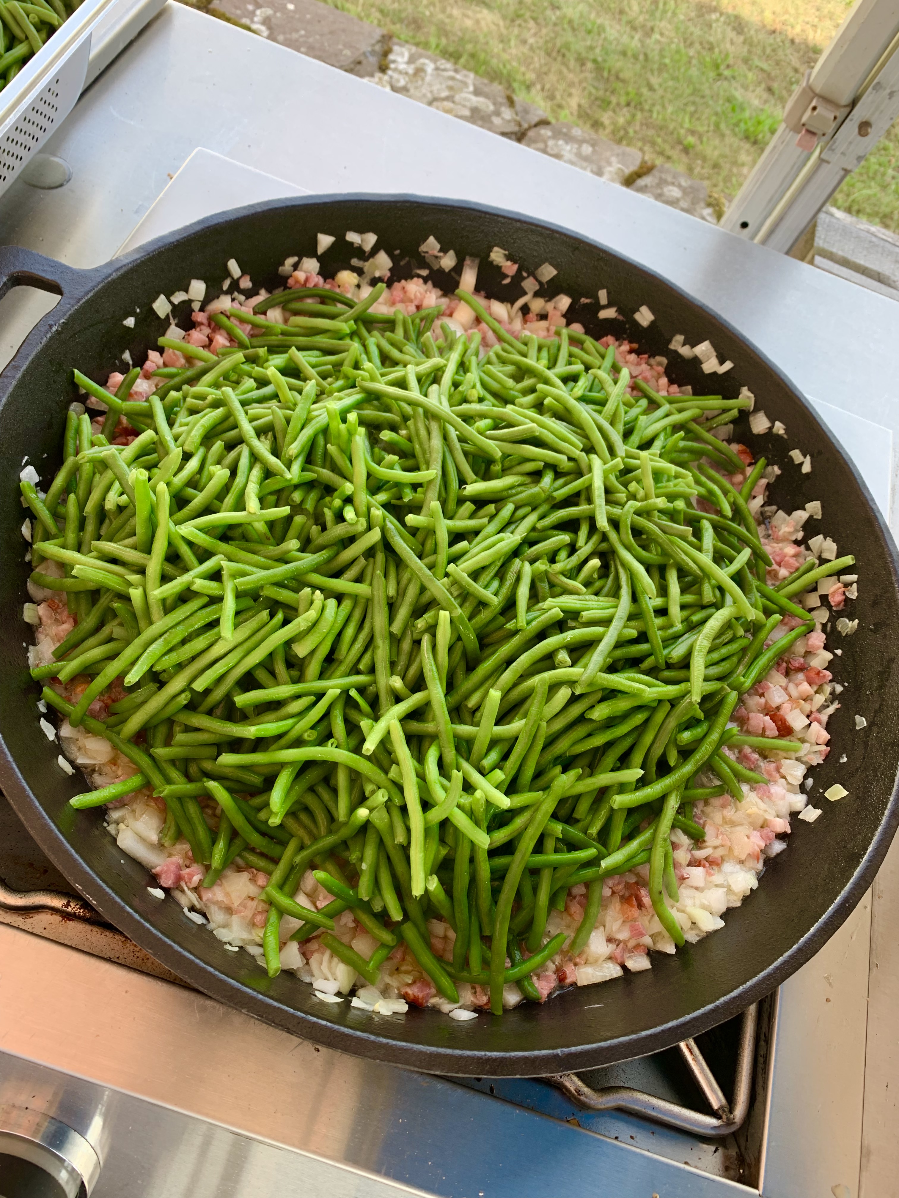 - Nigerianische Rindersteaks, Dry Age Qualität, mit Zwiebel Steak Sauce und grüne Bohnen